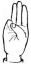 На ћирилици написано ЛАНА ТРИКОШАНИН састоји се из 14 слова [?]. Исписано ћириличном једноручном азбуком за глувонеме:
